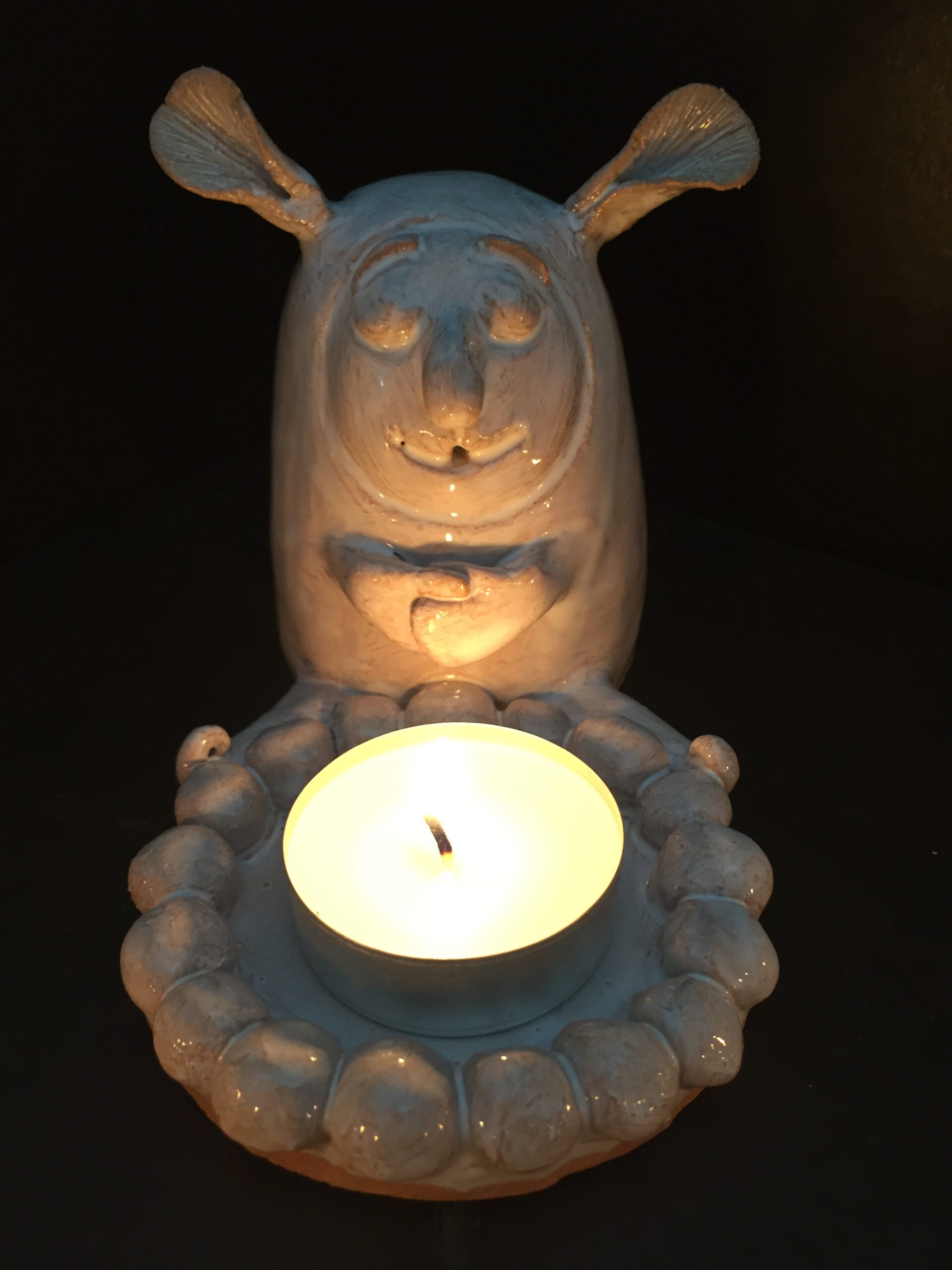 Bougeoir en faïence terracotta, émaillée.
