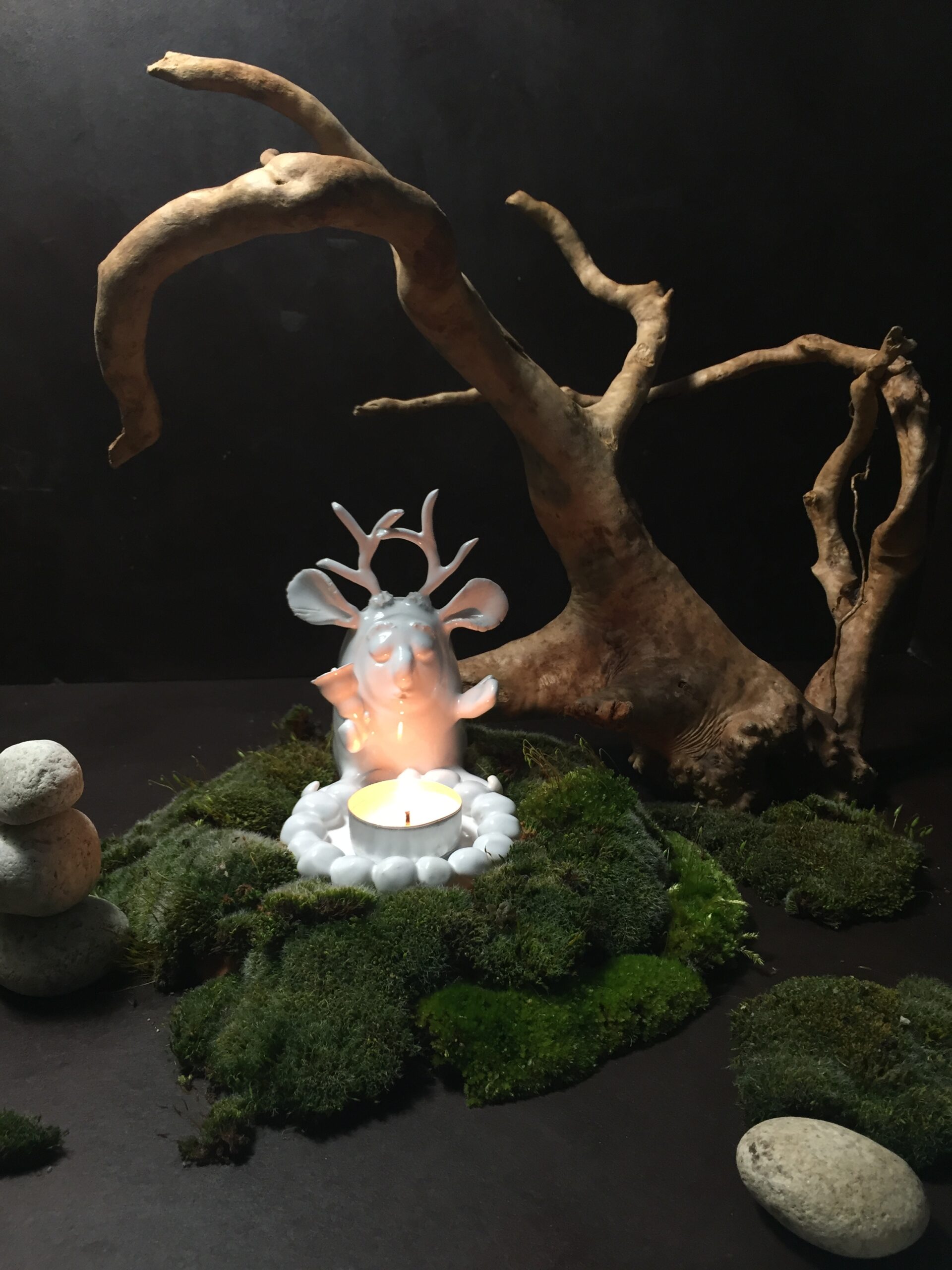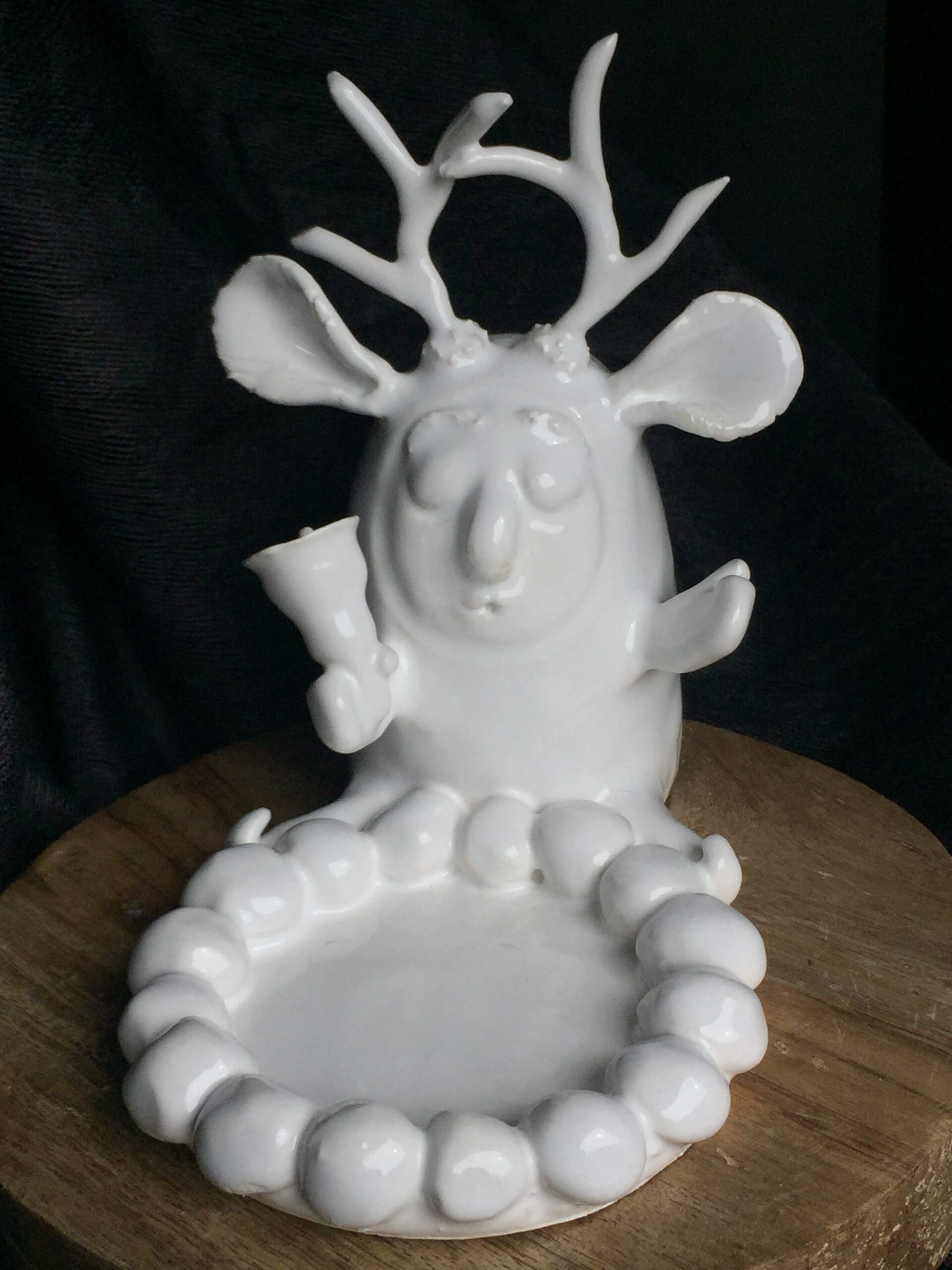 Bougeoir en grés, émaillé. Dimensions H12cm/L12cm/l6cm