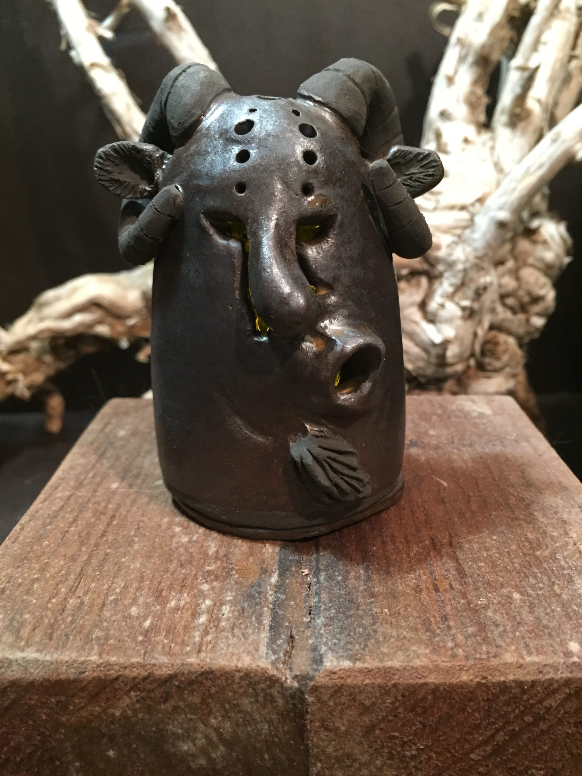 Gnôme ou disciple de Pan, voilà un esprit de la forêt qui souffle un vent moqueur. A moins qu’il ne sifflote pour charmer les sylphes…
